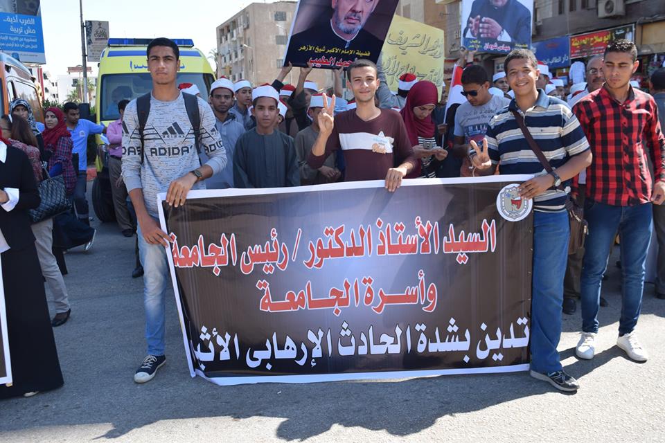 شاركت جامعة سوهاج جميع مؤسسات الدولة في مسيرة حاشدة للتنديد بالإرهاب ودعم الشرطة والجيش، بحضور الدكتور أيمن عبد المنعم محافظ سوهاج، واللواء عمر عبد العال مساعد وزير الداخلية مدير الأمن، والعقيد وليد حسانين المستشار العسكري، ولفيف من القيادات الشعبية والتنفيذية بالمحافظة، صرح بذلك الدكتور احمد… اقرأ المزيد »جامعة سوهاج تشارك في مسيرة حاشدة ضد الارهاب