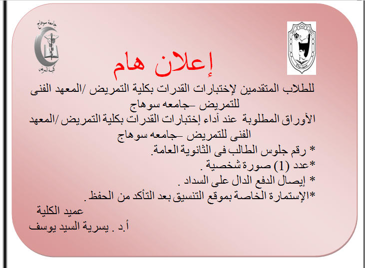 هامبواسطة Shimaa rafatتعلن اداره شئون طلاب بالكليه عن فتح باب التظلمات للاربع فرق الدراسيه وذلك من يوم الأحد الموافق ١٥ أغسطس حتى يوم الخميس الموافق ١٩ أغسطس