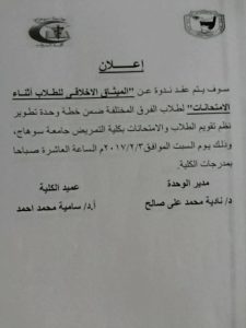 الرئيسية » اعلان ورشة عمل الميثاق الاخلاقى للطلاب أثناء الامتحانات