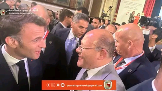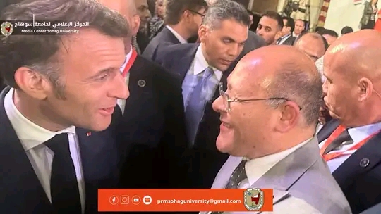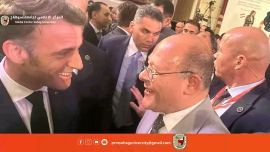 الدكتور حسان النعماني رئيس جامعة سوهاج و الرئيس الفرنسي إيمانويل ماكرون خلال فعاليات ملتقى الجامعات المصرية الفرنسية بجامعة القاهرة