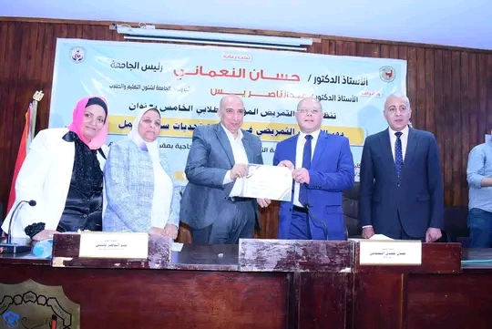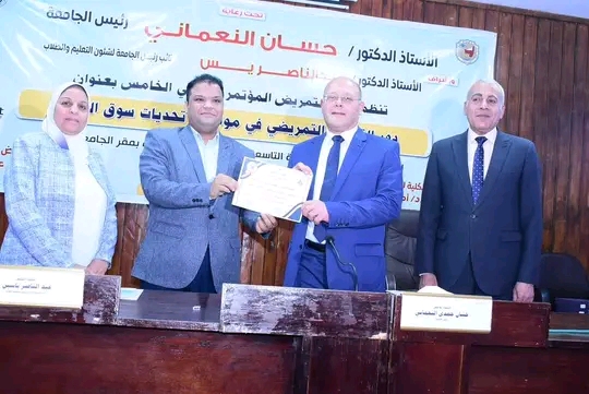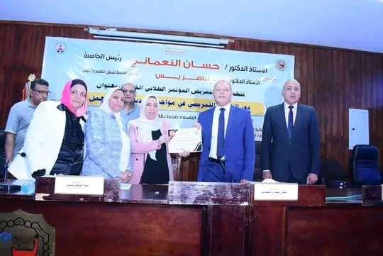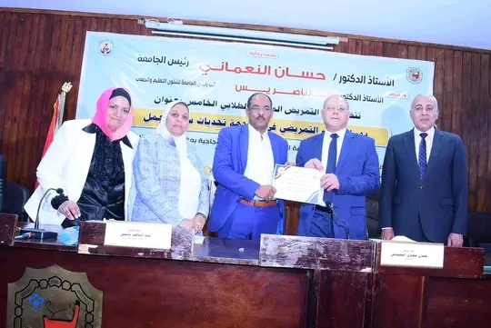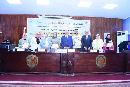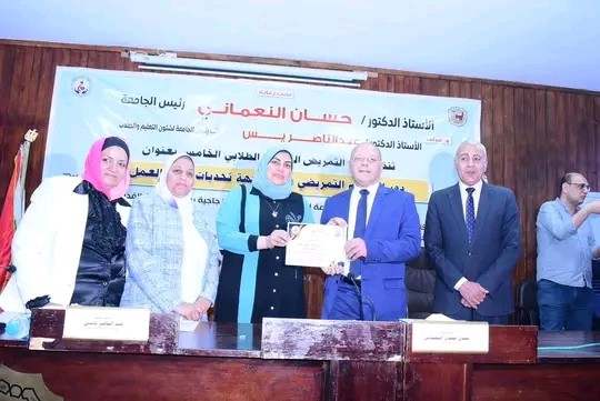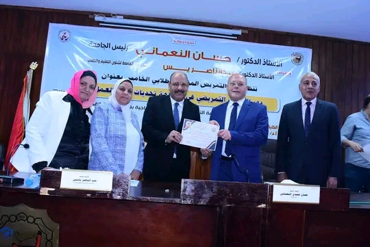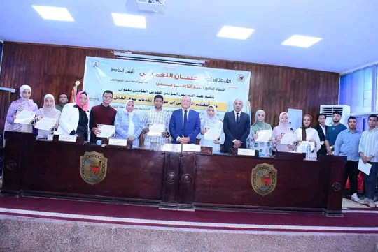 وفي ختام المؤتمر كرم رئيس الجامعة الطلاب المتميزين دراسياً وبالانشطه الطلابية بالفرق الاربعه بالكلية.