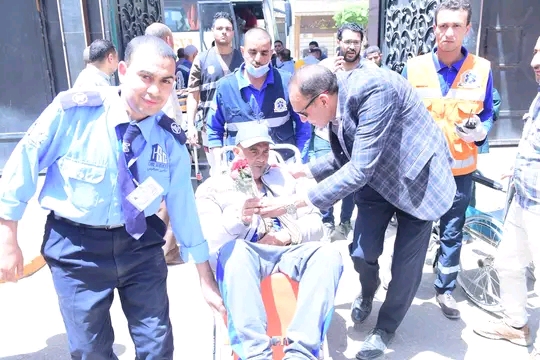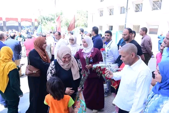 جدير بالذكر ان جميع كوادر المستشفي الطبية والادارية اصطفوا علي الجانبين محملين بالورود ورافعين اعلام مصر ترحيباً وابتهاجاً مع اخوتهم المصابين وذويهم من ابناء قطاع غزة ضيوفاً اعزاء علي قلوبهم الي ان يكلل الله لهم الشفاء العاجل ويعودوا الي اوطانهم فرحين مسرورين.