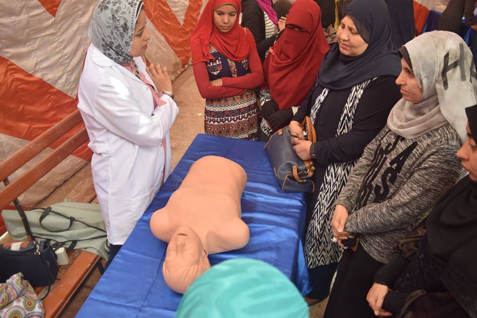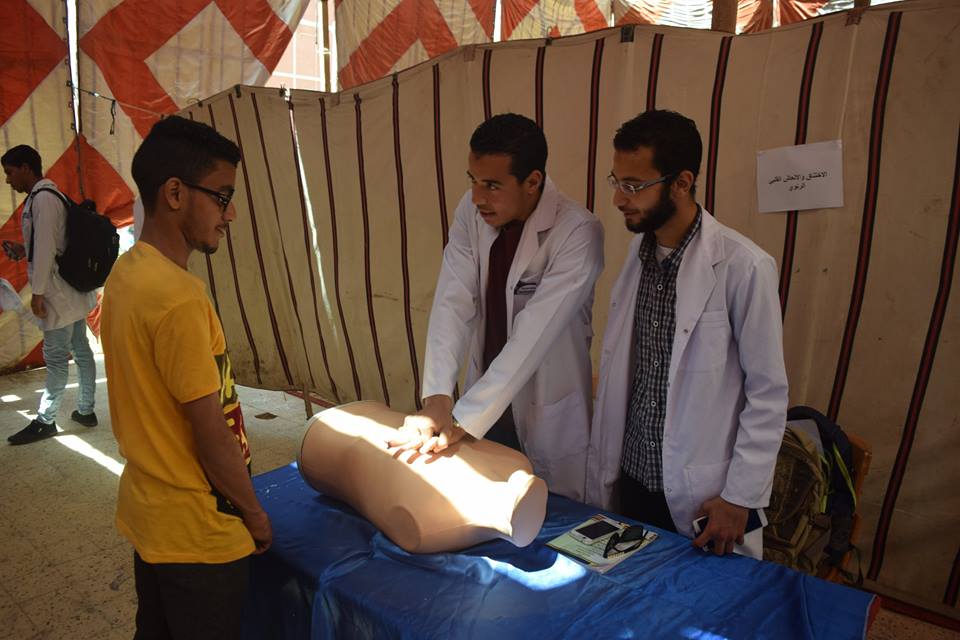 إنتهت فاعليات الخيمة التمريضية السنوية للإسعافات اﻷولية، والتى ينظمها قطاع شئون البيئة وتنمية المجتمع بكلية التمريض. ويتم خلال الخيمة تعليم الحقن بأنواعة وقياس العلامات الحيوية (الضغط) وقياس السكر وفحص الثدى الذاتى للنساء والإنعاش الرئوى والتعامل مع الكسور والحروق واللدغات وقد قام بإفتتاحها الأستاذ الدكتور أحمد عزيز رئيس الجامعة والأستاذ الدكتور سامية محمد سعيد عميد كلية التمريض وقد أظهر الطلاب نشاطا ملحوظا خلال الخيمة وقد أجرين أكثر من لقاء تلفزيونى وقد توافد الكثير من الطلاب وضيوف الجامعة على الخيمة السنوية للكلية .