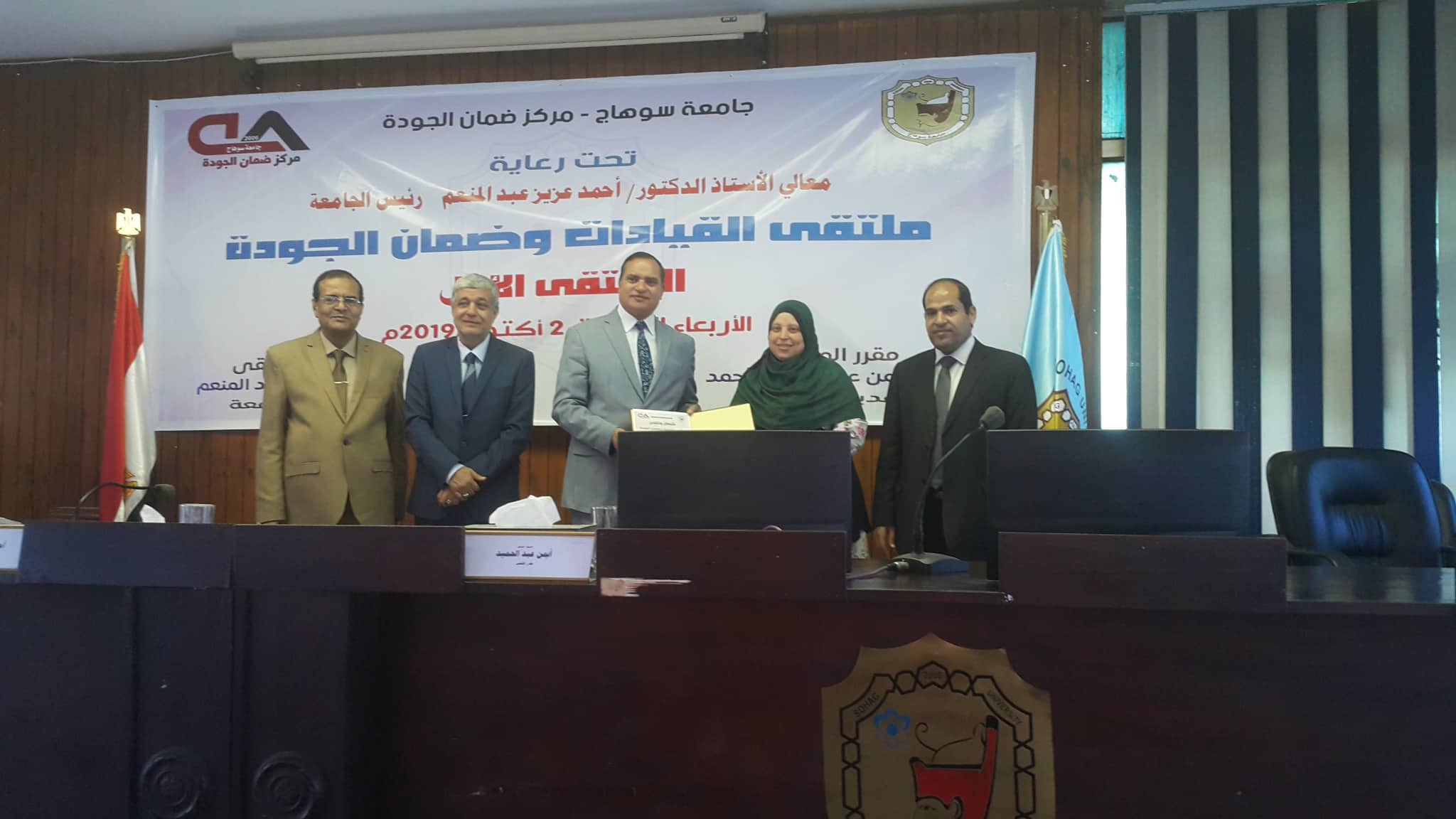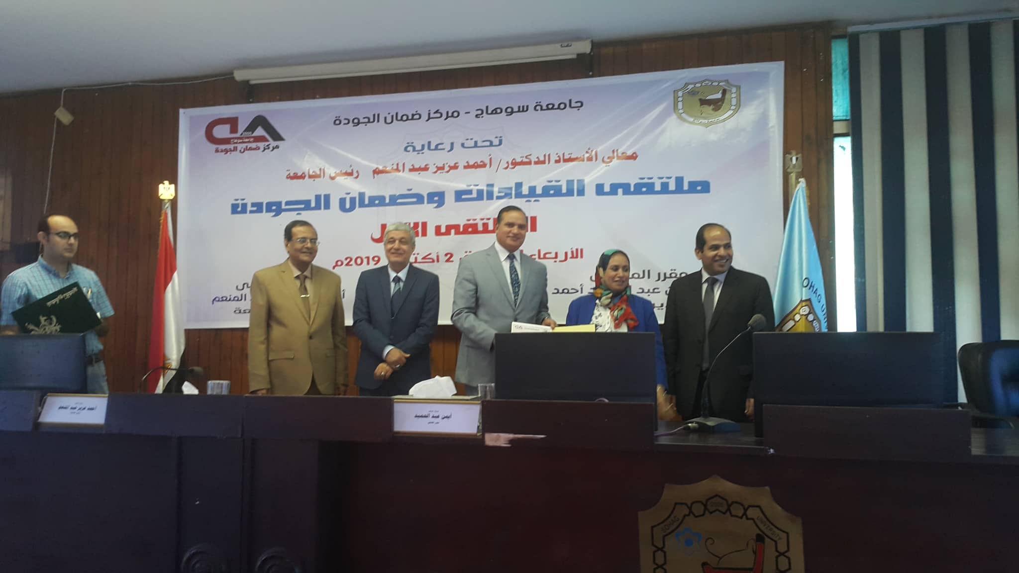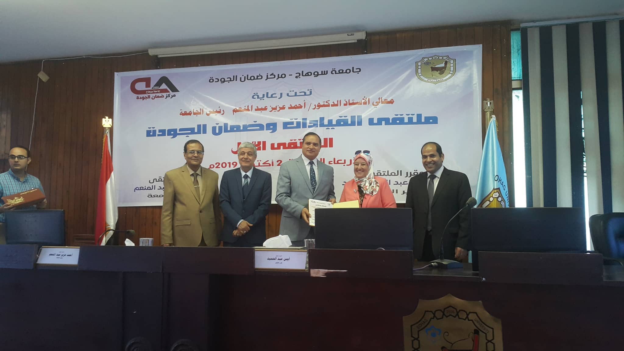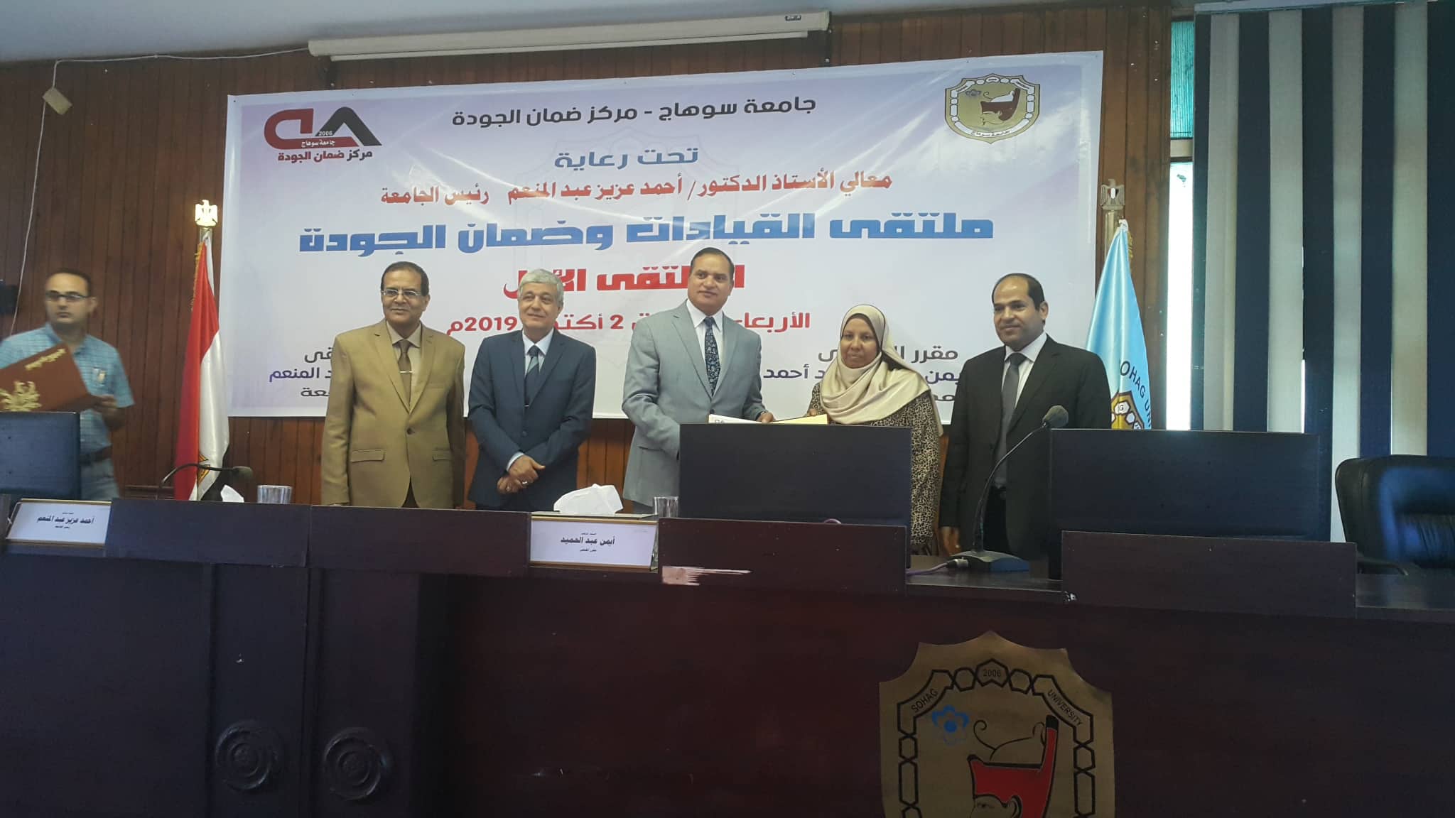 تم تكريم العديد من قيادات كلية التمريض بملتقى القيادات وضمان الجودة الأول وذلك بالقاعة الزجاجية برئاسة الاستاذ الدكتور أحمد عزيز رئيس جامعة سوهاج حيث تم تكريم الأستاذ الدكتور يسرية السيد عميد الكلية والاستاذ الدكتور غنى عبد الناصر وكيل الكلية لشئون الدراسات العليا والدكتور أمينة محمد وكيل الكلية لشئون التعليم والطلاب والدكتور نور الهدى محمد وكيل الكلية لشئون البيئة وخدمة المجتمع والدكتور منال محمد أحمد رئيس تمريض قسم الأطفال والدكتور نادية محمد رئيس قسم إدارة تمريض والدكتورة نجلاء هريدى رئيس قسم تمريض الحالات الحرجة ولفيف من السادة أعضاء هيئة التدريس .
