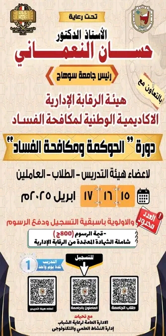 تنظم جامعة سوهاج دورة “الحوكمه ومكافحة الفساد”
