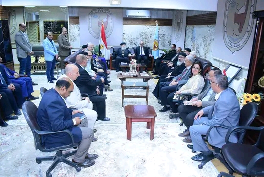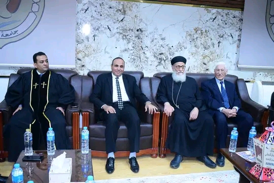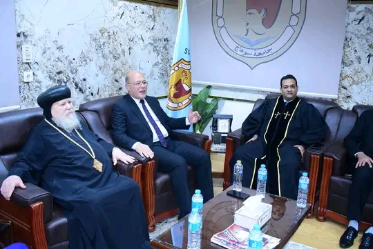 في تقليد سنوي تحرص عليه كنائس محافظة سوهاج..استقبل الدكتور حسان النعماني رئيس الجامعة، وفدًا من قيادات الكنائس، وممثلي طوائف الدين المسيحي في بالمحافظة، ويمثله كلاً من الأنباء باخوم مطران سوهاج والمنشاة والمراغة، القس مايكل راعي الكنيسة الإنجيلية، لتقديم التهنئة لأسرة الجامعة بمناسبة حلول عيد الفطر المبارك، وذلك بمكتبه بمقر الجامعة القديم.