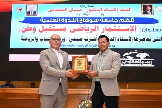 لأول مرة بجامعة سوهاج الدكتور أشرف صبحي وزير الشباب والرياضة محاضراً بندوة عن الاستثمار الرياضي