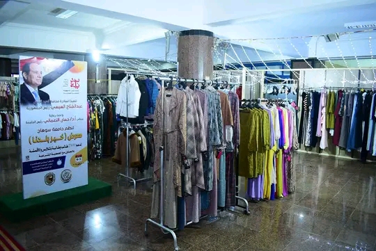 وثمن النعماني التعاون المثمر مع الجمعية الشرعية الرئيسية أحد الجمعيات التي تقوم بالعمل الخيري في مصر والعالم الإسلامي، موضحاً ان المعرض يعد بمثابة اضحم حدث خيري بالجامعة لدعم الطلاب الأولي بالرعاية من ذوي الهمم، وأبناء أسر تكافل وكرامة، والفتيات اليتيمات من أبناء محافظة سوهاج، حيث يوفر مايزيد عن ٢٥ ألف قطعة ملابس جديدة بالمجان، مشيدًا بالمعرض وجودة الملابس المعروضة به التي تُناسب جميع الأذواق.