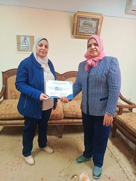 كرمت السيدة ا.د/ غني عبدالناصر عميد كلية التمريض السيدة ا.د/ ناديه صالح وكيل الكليه لشؤون الدراسات العليا والبحوث مقرر الدولي السادس بكلية التمريض جامعه سوهاج .