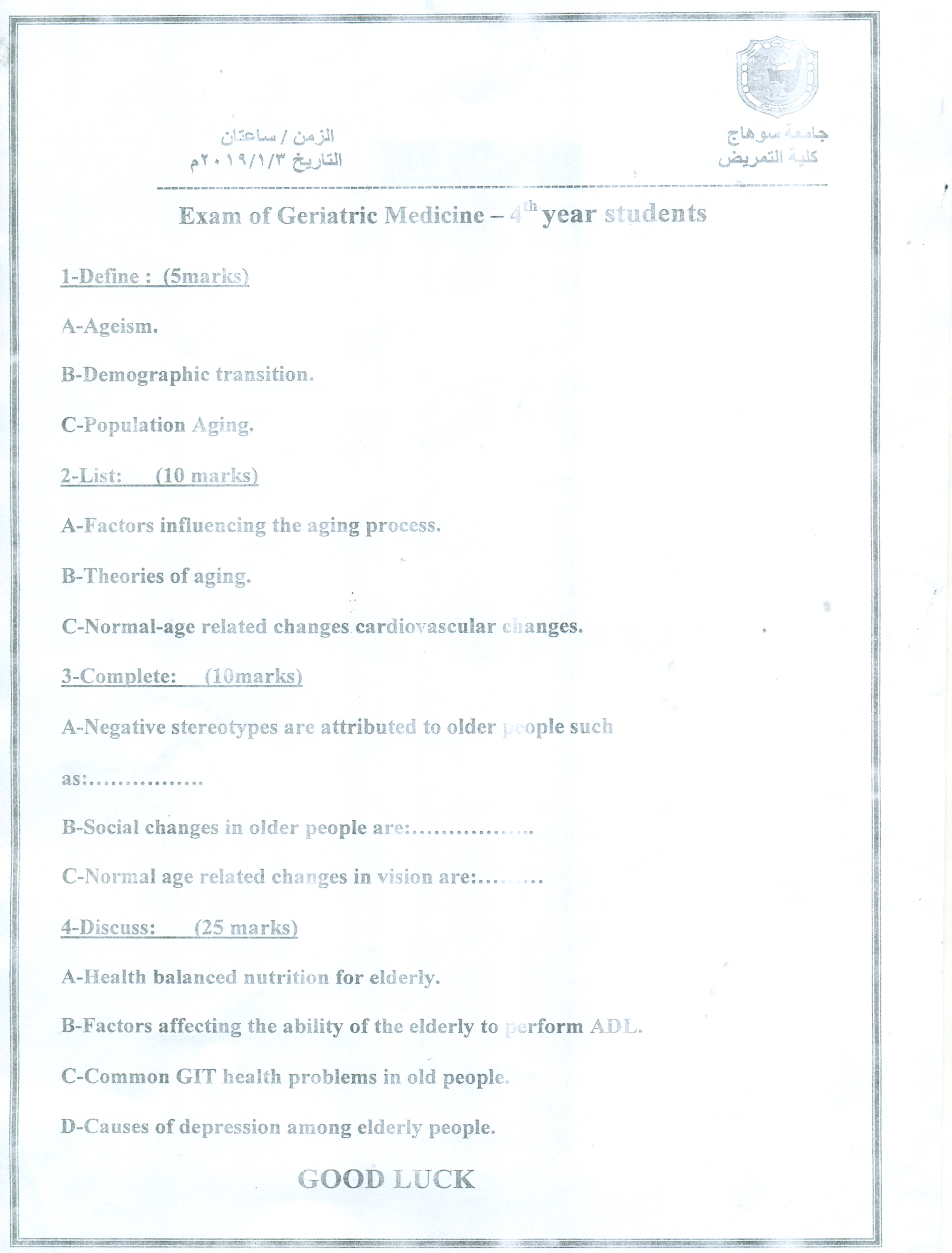امتحانات الاوسكى لقسم تمريض الاطفال